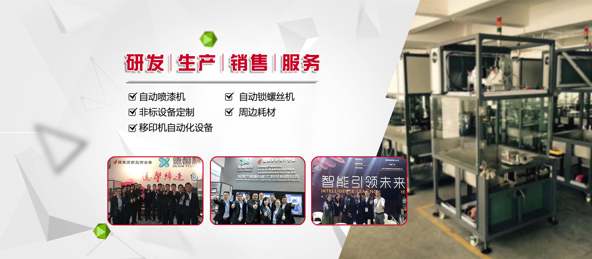 德馨科技創(chuàng)立以來,以改變噴印業(yè)傳統(tǒng)手工生產(chǎn)模式為目標,產(chǎn)品開發(fā)制造堅持以“環(huán)保、智能”為理念,為企業(yè)的生產(chǎn)環(huán)境、人力成本、生產(chǎn)效率等提供更為優(yōu)良的服務和技術(shù)支持。公司研發(fā)產(chǎn)品主要有自動化噴漆機械、噴漆模具制作等;生產(chǎn)銷售移印機械及移印相關耗材,包括菲林設計輸出;鋼板制作、移印膠頭制作、定位制作及周邊配件耗材并提供完善的售后服務支持。